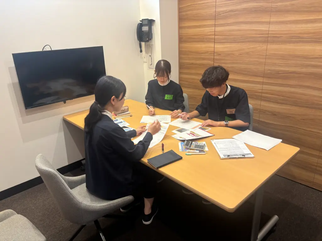 その後は、実際の業務に役立つ知識を学べる講義や、ロールプレイング、グループワークを通じて、コミュニケーション力やチームでの協働の大切さを体感してもらいました。