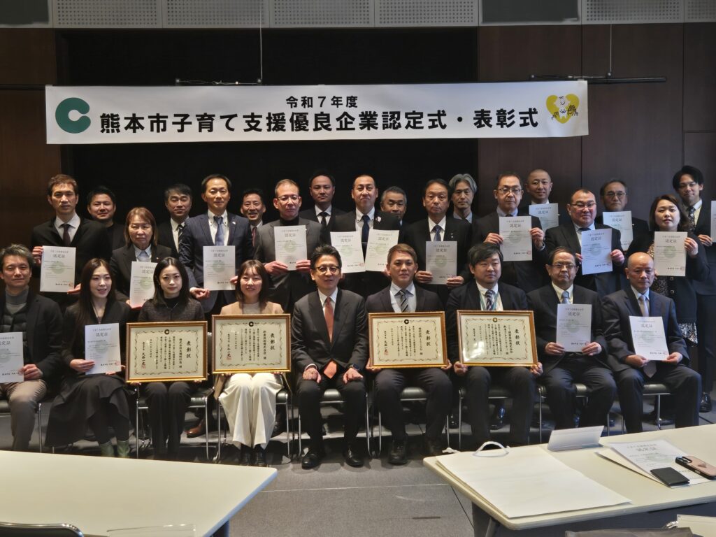 令和7年度 熊本市子育て支援優良企業に認定されました